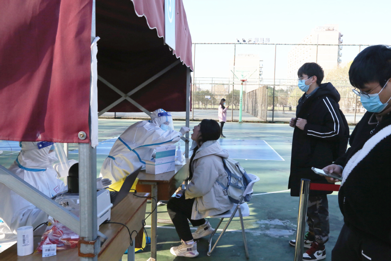 图片说明:学校组织在校考生和考务人员统一进行核酸检测