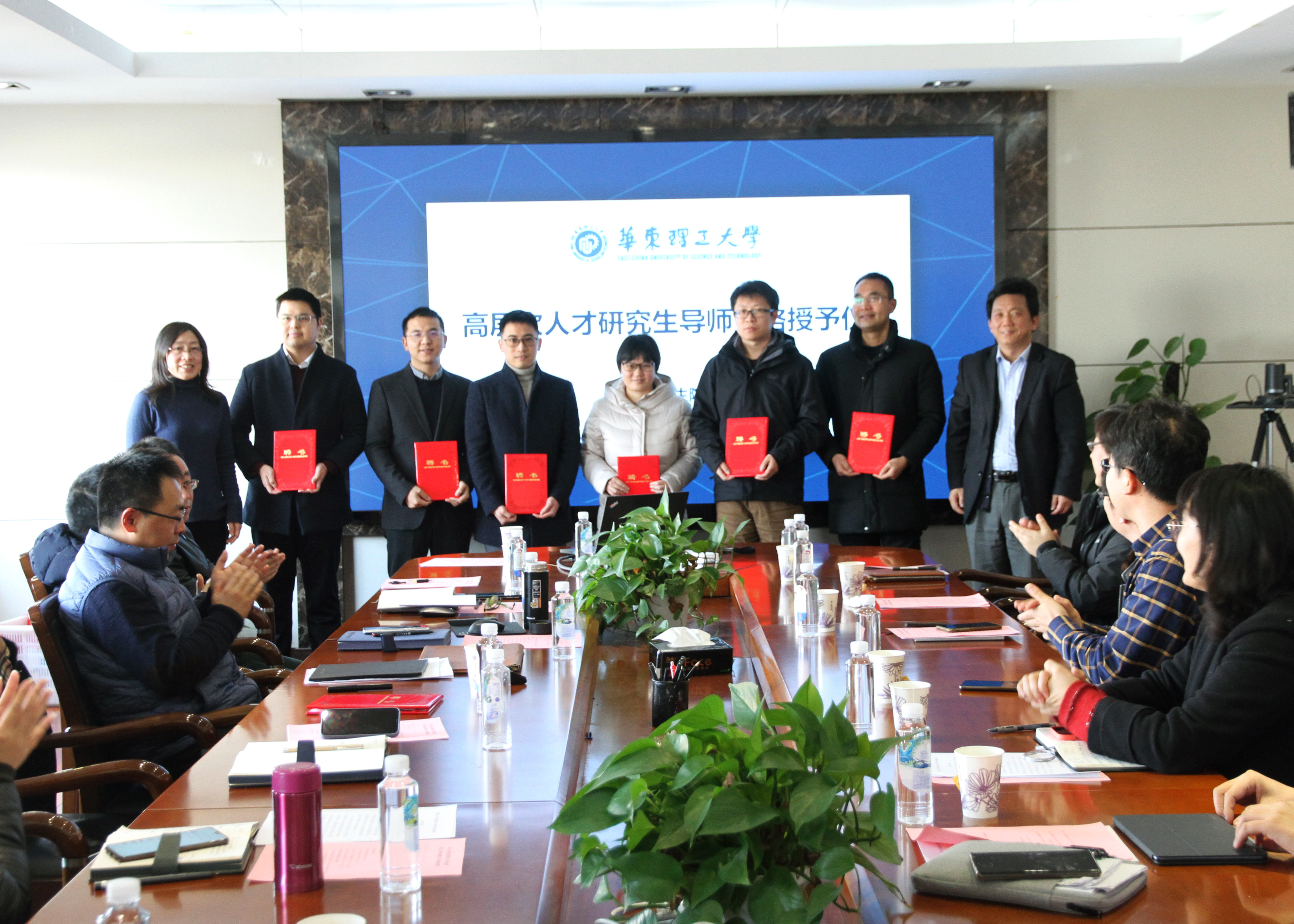会后,在二级研究生培养单位的见证下,朱为宏和杜文莉为获得国家级高层次青年人才和省部级人才的7名老师,颁发了博导和硕导聘书。
