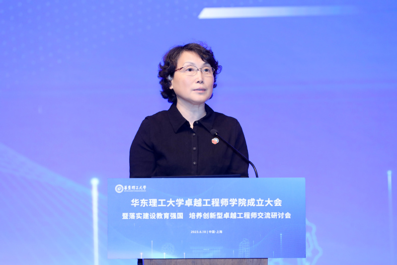 轩福贞在致辞中对上海市、行业协会、各合作企业长期以来给予华东理工大学人才培养和事业发展的关心、指导和支持表示感谢!他指出,成立卓越工程师学院,是学校深入学习贯彻党的二十大精神、推进学习贯彻习近平新时代中国特色社会主义思想主题教育走深走实的重要举措。建校70多年来,学校始终以服务国家战略、对接产业需求为导向,不断深化工程人才培养模式变革,走出了一条从“红色工程师”到“创新型工程师”的工程人才自主培养之路。新成立的卓越工程师学院将以“创新、协调、绿色、开放、共享”的新发展理念为引领,树立“大工程观”和工程教育新观念,扎根中国大地深化探索自主培养卓越工程人才的发展路径,努力成为新时代工程教育领域的“特长生”,为中国式现代化提供坚实的人才支撑。