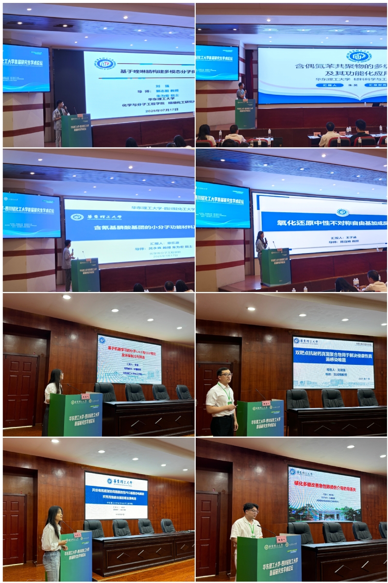为深化校际合作、促进学科交叉融合,助力新时代研究生教育高质量发展,7月16日至7月19日,“华东理工大学-四川轻化工大学首届研究生学术论坛”在四川轻化工大学汇东校区成功举办。四川轻化工大学副校长胡光忠,研究生院院长蒋维东,华东理工大学化工学院李思瑶教授,化学院王成云教授、燕宸旭副教授,材料学院彭玉副研究员出席本次论坛,两校百余位研究生代表参会,论坛开幕式由蒋维东主持。